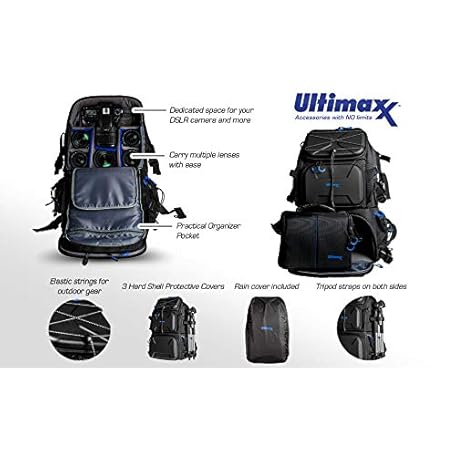 Thông tin sản phẩm Ultimaxx Extra Large Camera DSLR/SLR Backpack for Nikon, Canon, Sony, Panasonic, Pentax, Olympus, and Fuji Cameras—an Outdoor Hiking/Travelling Backpack with 15.6 Laptop Compartment