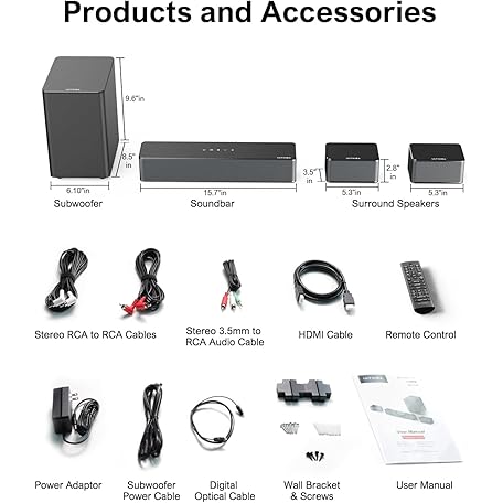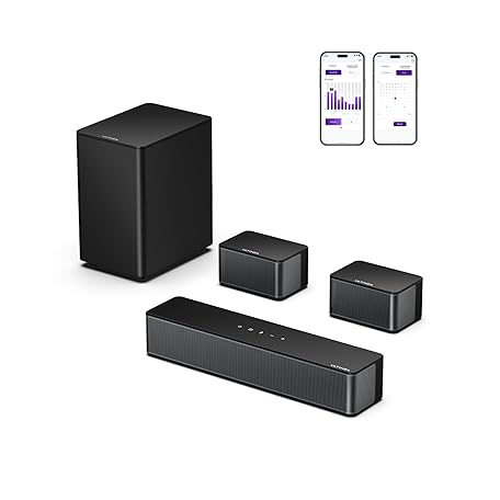 Thông tin sản phẩm ULTIMEA 5.1 Sound Bar for Smart TV, Virtual Surround Sound System for TV, 320W Peak Power, Adjustable Surround Speakers and Subwoofer, APP Control, Home Theater Soundbar Poseidon D50(2025 New Model)