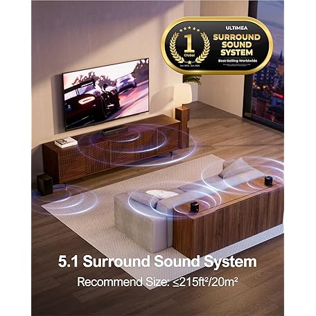 ULTIMEA 5.1ch Sound Bar with Subwoofer, Home Theater Virtual Surround Sound System for TV, Soundbar with App Control, 2 Surround Speakers, Opt/AUX, Peak Power 250W, Aura A30