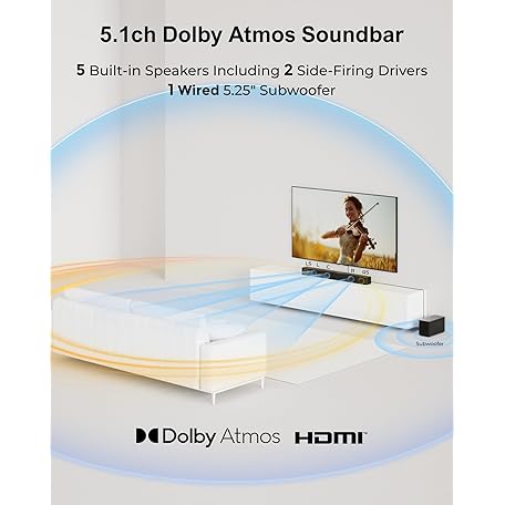 Thông tin sản phẩm ULTIMEA 5.1CH Surround Sound Bar with Subwoofer, Dolby Atmos, VoiceMX, BassMX, APP, 300W Soundbar for Smart TV, Home Theater Surround Sound System for TV, BT 5.4, Poseidon M60 (2025 Model)