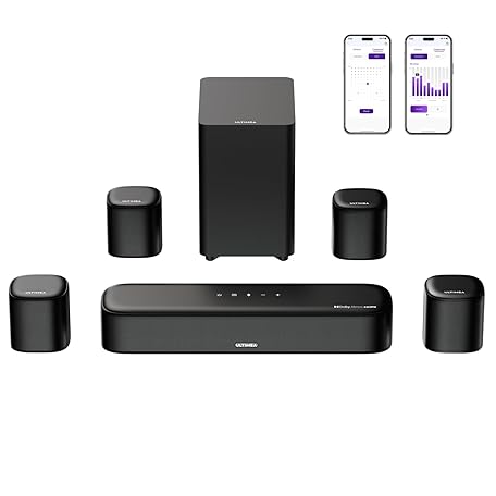ULTIMEA 7.1ch Sound Bar with Dolby Atmos, Surround Sound System for TV with 4 Surround Speakers, Sound Bar for Smart TV with App Control, Soundbar with Subwoofer for Home Theater, HDMI eARC, Aura A60