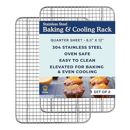 Thông tin sản phẩm Ultra Cuisine Oven-Safe, Dishwasher-Safe 100% Stainless Steel Cooling & Baking Rack Set - Tight-Wire Bake for Oven Cooking - Heavy Duty - 8.5x12 - Set of 2 - Small Quarter Sheet Pan Cooling Racks