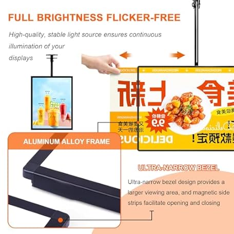 Thông tin sản phẩm Ultra Slim LED Backlit Menu Board, Illuminated 3D Poster Display with Aluminum Frame, 50x70cm Light Box for Restaurants, Cafes, and Shops - 1pc