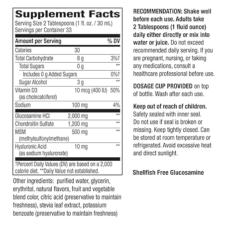 Thông tin sản phẩm Ultra Strength Joint Movement Glucosamine, Shellfish Free, Gluten Free, Sugar Free (Glucosamine 2000mg + Chondroitin 1200mg + MSM 500mg) 33.8 Fl Oz (Pack of 1)