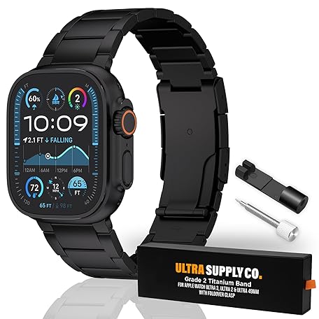 Ultra Supply Co. Ultra Supply Co. 49mm Titanium Band Compatible with Apple Watch Ultra 3, 2 & 1 – Adjustable Link Metal Bracelet, Fold-Over Clasp, Waterproof, One Size Fits All, Durable, Lightweight, Black