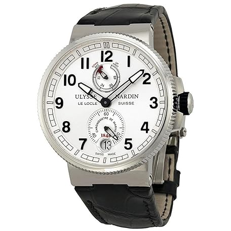 Ulysse Nardin Marine Chronometer Manufacture Men's Black Leather Strap Automatic Power Reserve Watch 1183-126/61