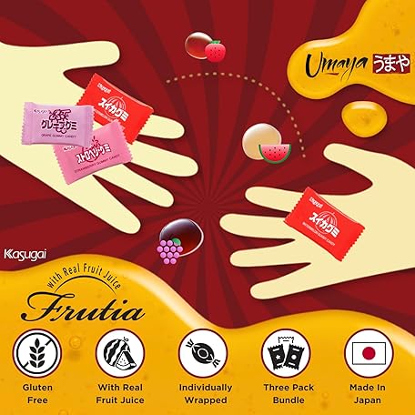 Thương hiệu umaya là cái tên nổi tiếng được rất nhiều khách hàng trên thế giới chọn lựa. Với kiểu dáng đẹp mắt, sang trọng, sản phẩm UMAYA - Kasugai Fruita Gummies - Japanese Fruity & Soft Gummy Candy 3 Pack Bundle With A Snack Bag Clip - One Pack Of Each Flavor - Strawberry (3.59oz), Grape (3.77oz), & Watermelon (3.77oz) là sự lựa chọn hoàn hảo nếu bạn đang tìm mua một món cho riêng mình.