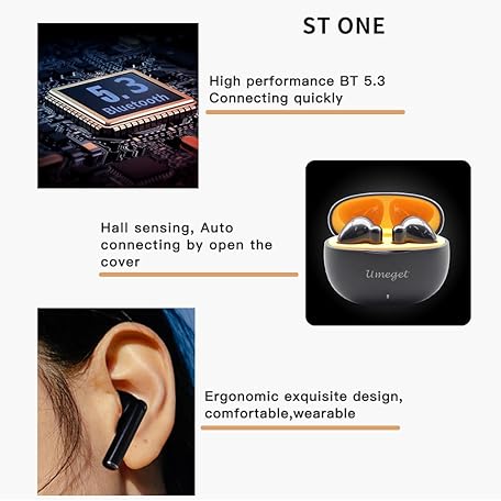 Thông tin sản phẩm UMEGET TWS Earbuds ENC Noise Cancellation Wireless Bluetooth Earphones,Dual Mics in Ear Detection Wireless Headset,Lower Delay 13mm Speaker Headphones. (Black)