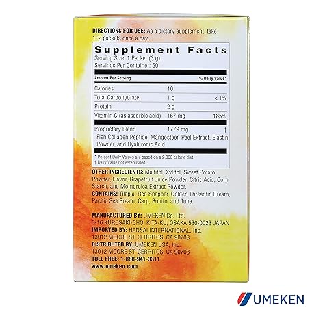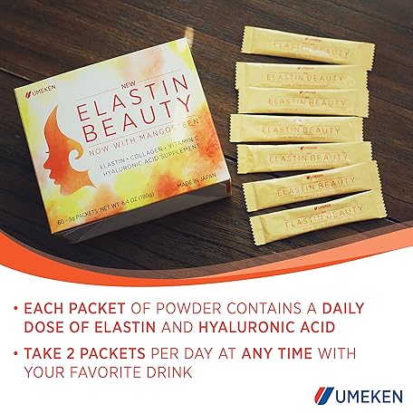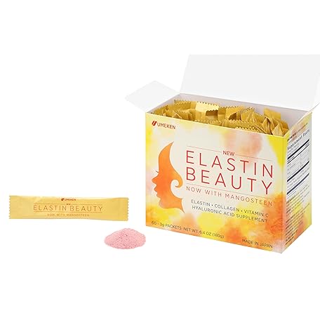 Thông tin sản phẩm Umeken Elastin Beauty Powder Supplement with Collagen Peptides, Hyaluronic Acid, Vitamin C and Mangosteen Fruit, Women’s Health and Wellness, 1 Month Supply, 60 Packets