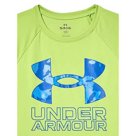 Under Armour Boys' Tech Big Logo Long Sleeve T-Shirt, (326) Green Vibe / / Blue Atlantis, Small Plus