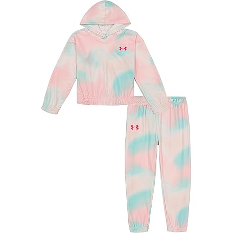 Under Armour Girls Hoodie Set, Bottoms & Lightweight Relaxed Fit Clothing Set, Pink Fizz Velvet, 5 US