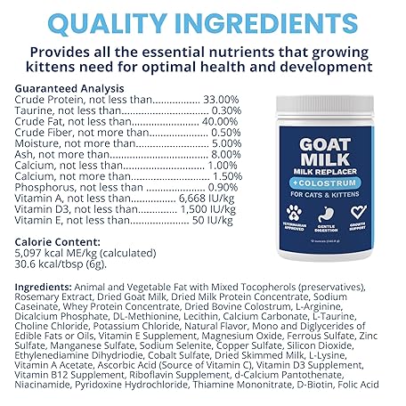 Under the Weather Kitten Milk Replacement Powder + Colostrum for Cats & Kittens | Goat Milk Replacer Powder | Goat-Based Formula with Colostrum for Immune & Digestive Support - 12 oz