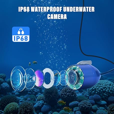 Underwater Fishing Camera, 7 Inch LCD Monitor Portable Fish Finder Waterproof 1000TVL Fishing Camera Waterproof IP68 with 65.62ft Cable for Lake, Boat, Ice Fishing (Cable20M)