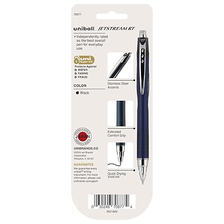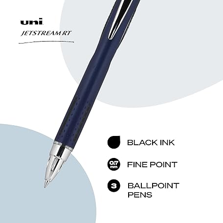 Thông tin sản phẩm Uni-Ball Jetstream RT Pens - NY Times Wirecutter Best Pen for Over a Decade - Pack of 3 Black Fine Point Pens, 0.7mm - Back to School Pens, Ballpoint Pens
