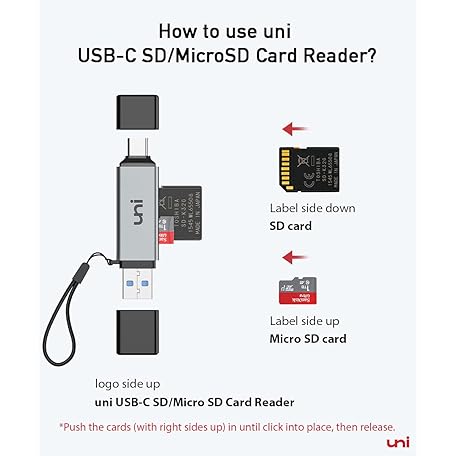 Thông tin sản phẩm uni SD Card Reader, High-Speed USB C to Micro SD Card Adapter USB 3.0 Dual Slots, Memory Card Reader for SD/Micro SD/SDHC/SDXC/MMC, Compatible with MacBook Pro/Air, Chromebook, Android Galaxy