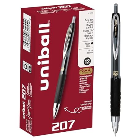 Thông tin sản phẩm uniball 207 Retractable Gel Pens, Micro Point (0.5mm), Black, 12 Pack