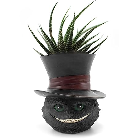 Unique Black Cat Head Little Planter Pot, Cute Succulent Indoor Flower Pot, Funny Novelty Resin Plant Flowerpot with Drain Hole, Cat Pen Brushes Holder, Lovely Desk Room Home Decor