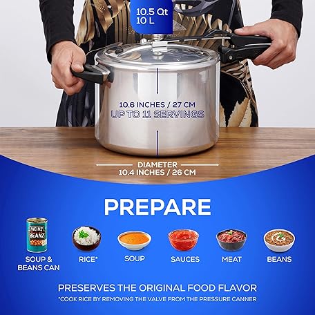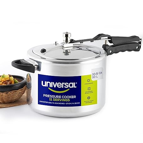 Thông tin sản phẩm universal (10.5 Quart / 10 Liter) Pressure Cooker, 11 Servings, Aluminum Pressure Cooker With Multiple Safety Systems and Heat Resistant Handles For Stews, Soup, Meat, and Beans