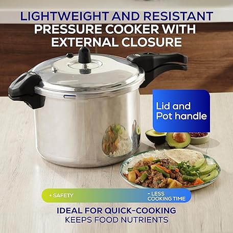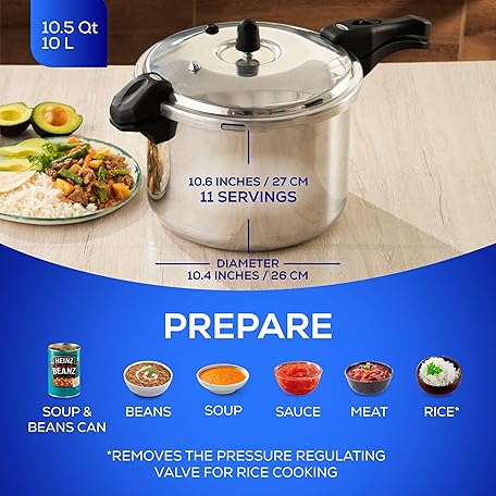 Thông tin sản phẩm universal (10.5 Quart / 10 Liter) Ultra Pressure Cooker, Pressure Pot with 6 Safety Systems, Aluminum Pressure Cooker for 11 Servings, Even Heat Distribution, Diameter 10.4 inches, Height 10.6 inches