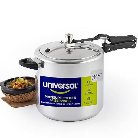 Thông tin sản phẩm Universal (13.7 Quart / 13 Liter) Pressure Cooker, 14 Servings, Aluminum Pressure Cooker With Multiple Safety Systems and Heat Resistant Handles For Stews, Soup, Meat, and Beans
