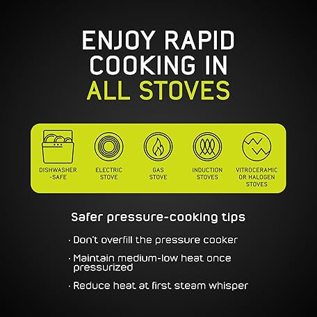 universal (6.3 Qt/6 Liter) Silver Express Pressure Cooker + Extra Glass Lid, (15 PSI/100 kPa) with Easy Opening System, Ultra Safe Stainless Steel Pressure Cooker