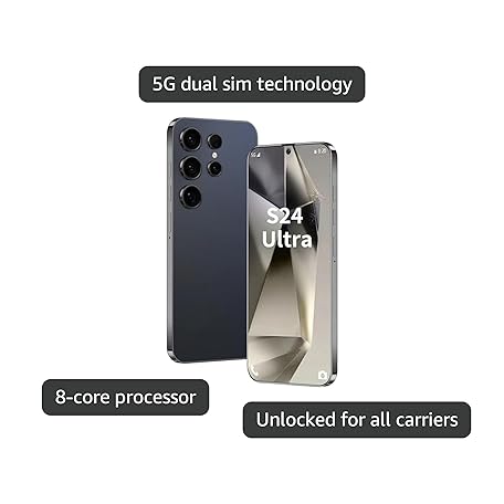 Sản phẩm Unlocked Phone S24 Ultra Android Phone 8-core 8GB+256GB Cell Phone 7 inch HD Screen Mobile Phone 108MP+48MP Camera 6800 mAh Battery 5G Dual SIM (Titanium Black) đang được bán với giá ưu đãi là $163.4891 tại nước Mỹ.