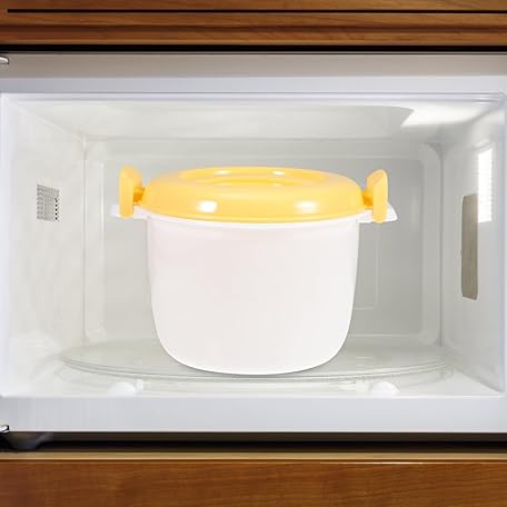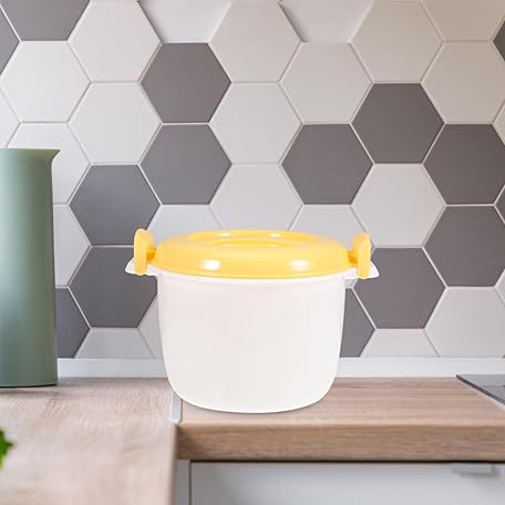 Unomor Microwave Rice Cooker Small-7.08 Inch Yellow Plastic Rice Container with Lid for Pasta Veggies, Porridge and More-Ideal for Home Office and Travel