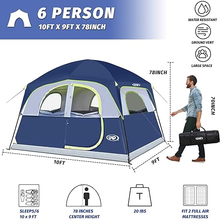 Sản phẩm UNP Tents 6 Person Waterproof Windproof Easy Setup,Double Layer Family Camping Tent with 1 Mesh Door & 5 Large Mesh Windows -10'X9'X78in(H) đang được bán với giá ưu đãi là $124.151 tại nước Mỹ.