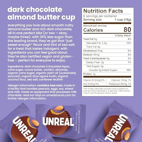 Thương hiệu UNREAL là cái tên nổi tiếng được rất nhiều khách hàng trên thế giới chọn lựa. Với kiểu dáng đẹp mắt, sang trọng, sản phẩm UNREAL Dark Chocolate Almond Butter Cups 6Pk, 3.2 OZ là sự lựa chọn hoàn hảo nếu bạn đang tìm mua một món cho riêng mình.