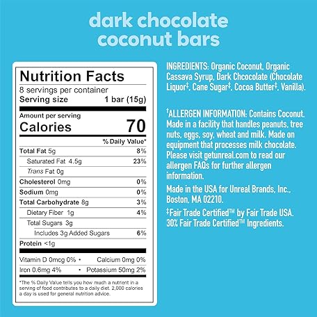 Thông tin sản phẩm UNREAL Dark Chocolate Coconut Bars (Value Size Bag) | Vegan, 3g Sugar, & 3 Simple Ingredients | Non-GMO, Gluten Free, & Fair Trade | 9.5oz