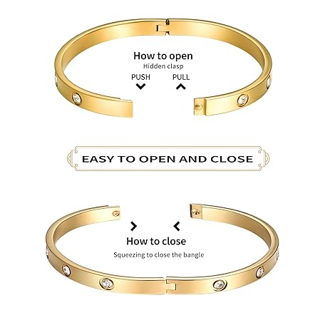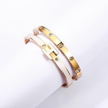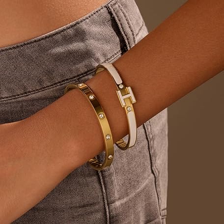 UOOANUO 14K Gold Plated Love and H Bangle Bracelet Stackable Stainless Steel Bracelets Set for Women Trendy Jewelry