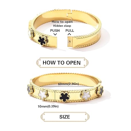 Sản phẩm UOOANUO Clover Bracelet Bangle for Women 14K Gold and White Gold Plated Stainless Steel Lucky Jewelry đang được bán với giá ưu đãi là $12.1971 tại nước Mỹ.