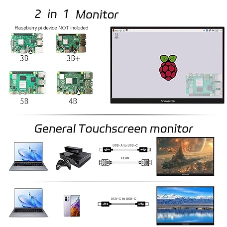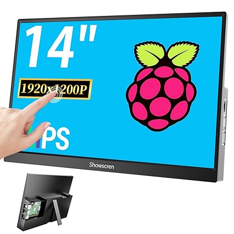 Update 14inch Monitor for Raspberry Pi 5/4B/3B+/3B Screen, IPS Display FHD 1920X1200, Built-in Speaker, HDMI USB-C Portable Monitor Touchscreen for Laptop Computer Switch Xbox PS3/4/5