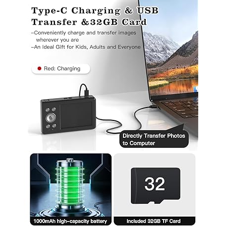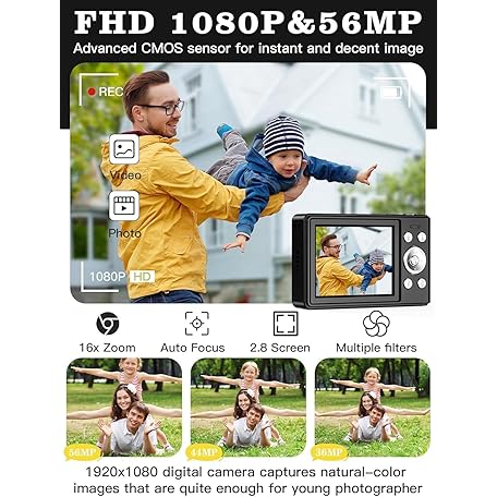 Thông tin sản phẩm Upgrade Digital Camera, 56MP FHD 1080P for Kids with 16x Zoom Anti Shake, 32GB TF Card, Two Batteries, Lanyard, Compact Small for Boys Girls (Black)