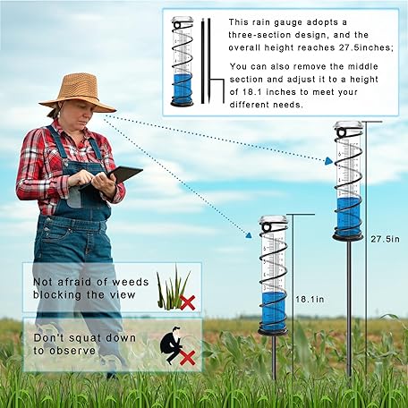 Thông tin sản phẩm Upgrade Rain Gauge, Detachable Spiral Rain Gauge Outdoor, Rain Measure Gauge for Yard, Large Number Rain Water Meter, Thickened Plastic Rain Gauge with Stake and Metal Frame for Patio,Lawn