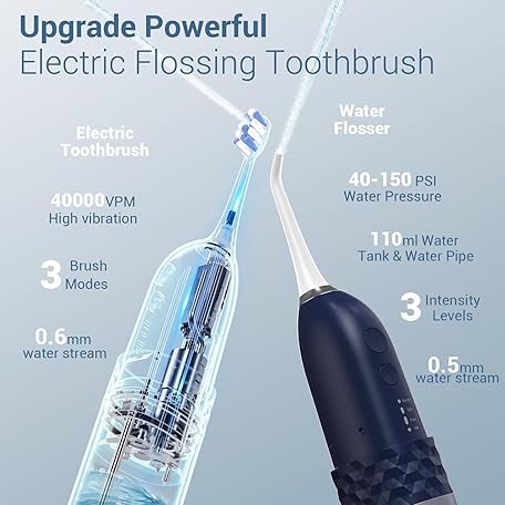 Thông tin sản phẩm Upgraded 2-in-1 Electric Toothbrush with Water Flosser, Ultrasonic Cleaning & 3+4 Smart Modes, Portable Oral Irrigator with Point-Jet, Rechargeable IPX7 Waterproof for Home & Travel Use