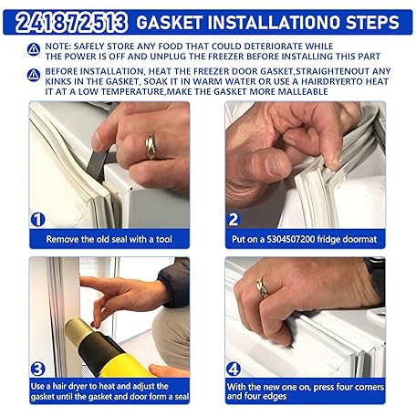 Upgraded 241872513 Refrigerator Door Gasket,Compatible with Frigidaire,Electrolux,Kenmore,Crosley Freezer Door Gasket Seal Part Replaces 1465365,240370906,240390701, White