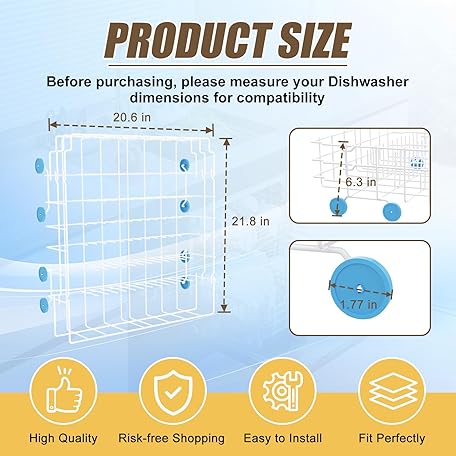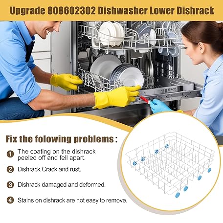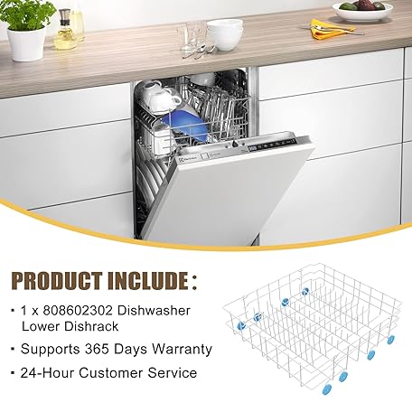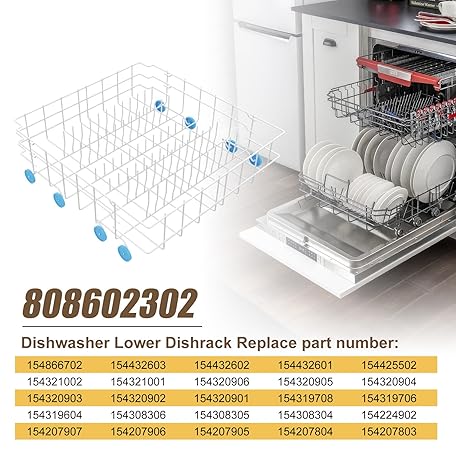 UPGRADED 808602302 5304535768 Dishwasher Lower Rack Replacement Compatible with Frigidaire, Kenmore Dishwasher Bottom Rack with 154174501 Blue Wheels Replace 154432602 154432601 Dishwasher Rack Parts