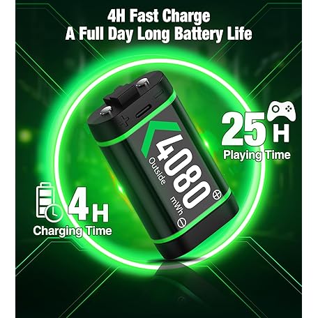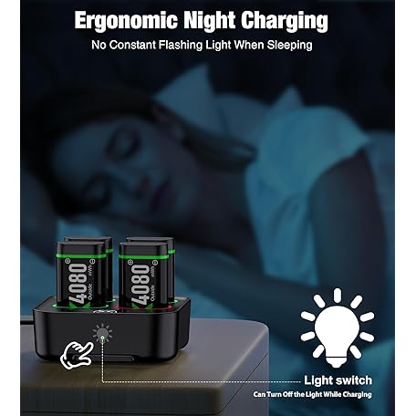 Thông tin sản phẩm Upgraded Fast Charging Rechargeable Battery Packs with Light Control, 4x4080mWh Xbox Controller Batteries with Charger Dock for Xbox Series X|S, One S/X/Elite Controllers,Cases and Storage Sets
