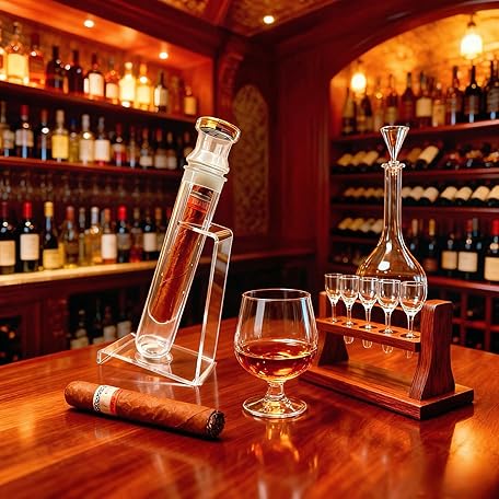 Upgraded Handmade Glass Cigar Humidor Set– Double Straight Pipe Design, Acrylic Item Stand & Hygrometer, Cigar Incense Glass Tube Set, Humidity Control, Portable Travel Case for Flavorful Mellowing