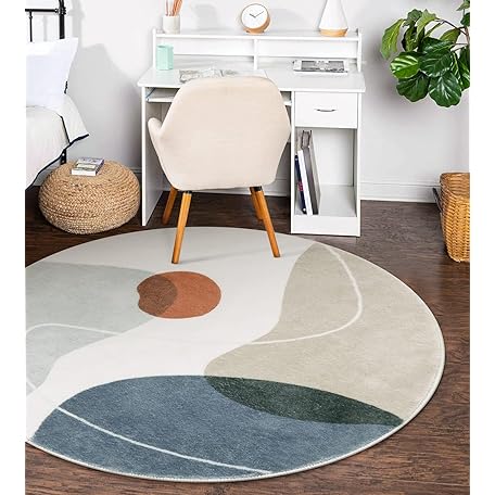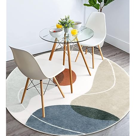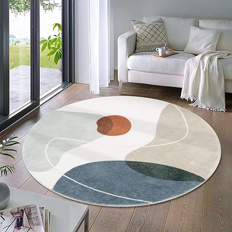 • Uphome Boho Round Rug 4ft Soft Abstract Washable Rug Minimalist Farmhouse Circle Area Rug Non Slip Aesthetic Floor Carpet for Sofa Living Room Bedroom Kids Room