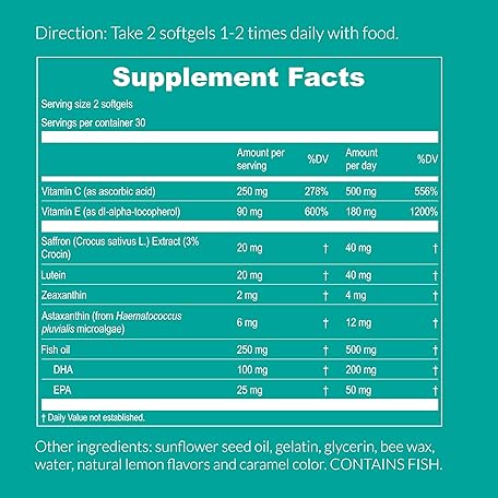 Thông tin sản phẩm UpNourish AREDS 2 Eye Vitamins for Seniors - Lutein Eye Health Supplement for Adults - Computer Eye Strain Relief, Ocular Health and Dry Eye Support - Vision & Eye Supplements for Women and Men