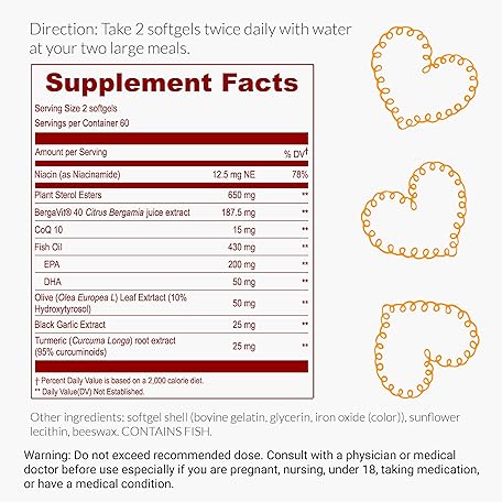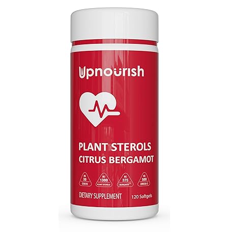 UpNourish Plant Sterols Citrus Bergamot Supplement with CoQ10, Omega 3, Olive Leaf, Turmeric Curcumin, Black Garlic and Niacin - 120 Softgels