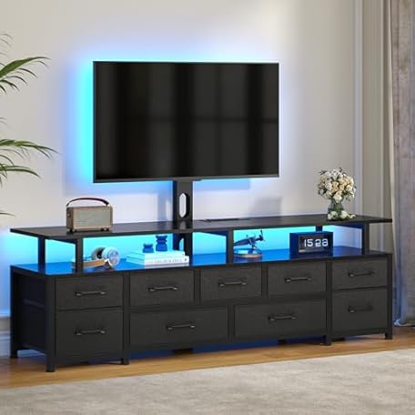 • UPOSOJA TV Stand with Mount and Power Outlet for 32/50/65/75 inch TVs, LED TV Stand with 9 Fabric Drawers, Entertainment Center for Living Room, Bedroom (Black, Functional)
