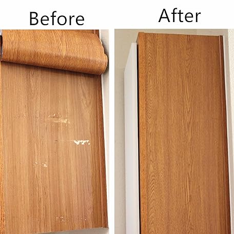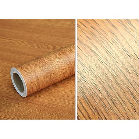 • UPREDO Brown Wood Grain Adhesive Paper Wall Paper Vinyl Funitures Dresser Drawer Cabinet Sticker (15.8X197inch(16.4ft), Brown)