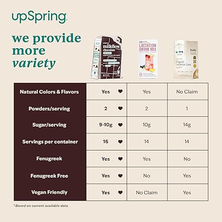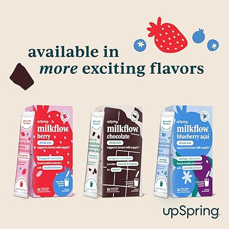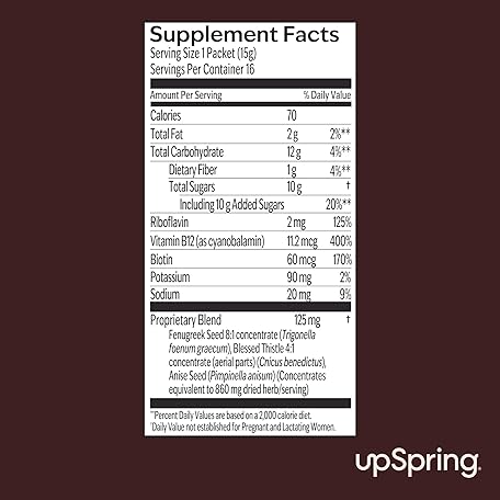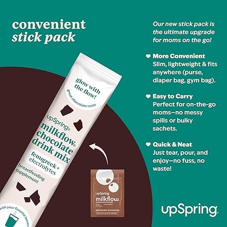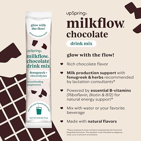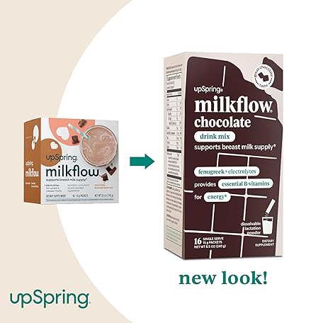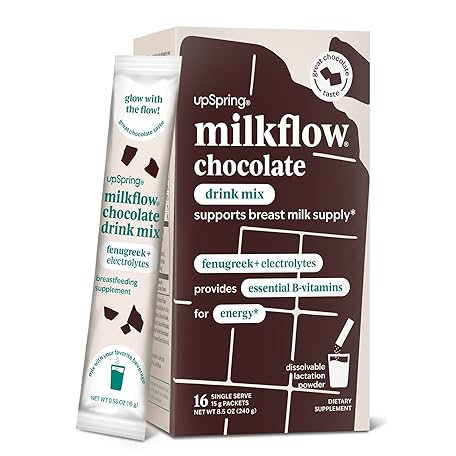 UpSpring Milkflow Breastfeeding Supplement Drink Mix with Fenugreek and B Vitamins to Support Breast Milk Supply and Energy, Chocolate Flavor, 16 Drink Mixes