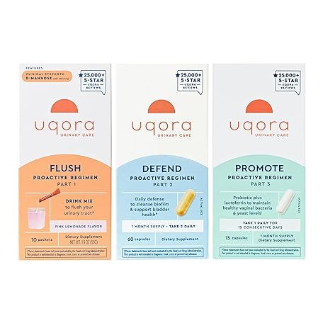 Thông tin sản phẩm Uqora Complete Regimen with Flush, Defend & Promote - Urinary Tract Support with D-Mannose, Vitamin C, Green Tea Extract, Probiotics & More - Comprehensive Bladder Health Support* - 3-Part Bundle