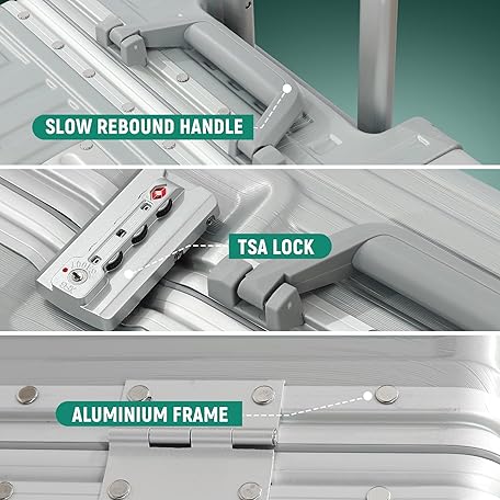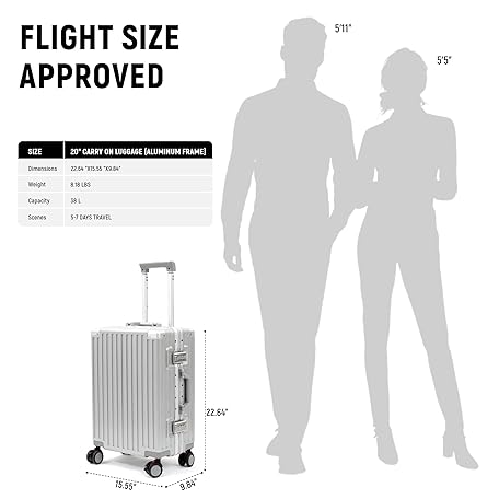Thông tin sản phẩm UrbanExplorer 20 Inch Carry On Luggage Aluminum Frame Airline Approved, Zipperless Luggage Carry On TSA Approved ABS+PC Hard Shell Suitcases, Lightweight Carry-On Suitcase with Cup Holder, Sliver