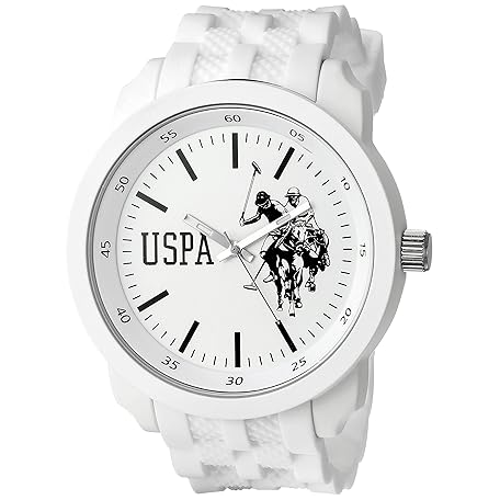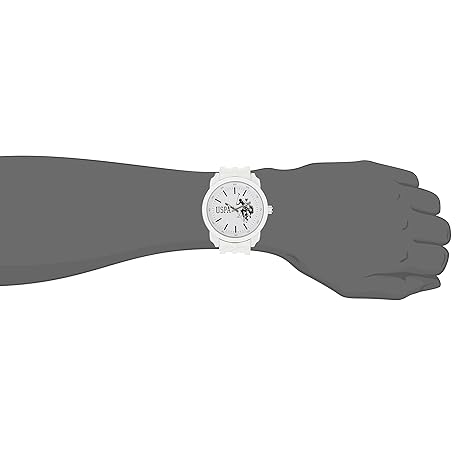 Thông tin sản phẩm U.S. Polo Assn. Men’s White Sport Watch with Silicone Strap, 50mm Case, Analog Quartz Movement, Bold Dial, Box Included, Adjustable Fit 5.5"–8.25"