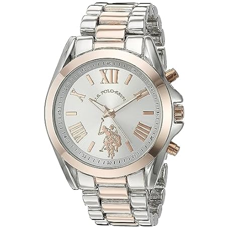 Thông tin sản phẩm U.S. Polo Assn. Women's Two-Tone Analog Watch – Silver Dial with Rose Gold Accents, 41mm Metal Case, and Alloy Link Bracelet – Elegant Quartz Timepiece for Everyday Style